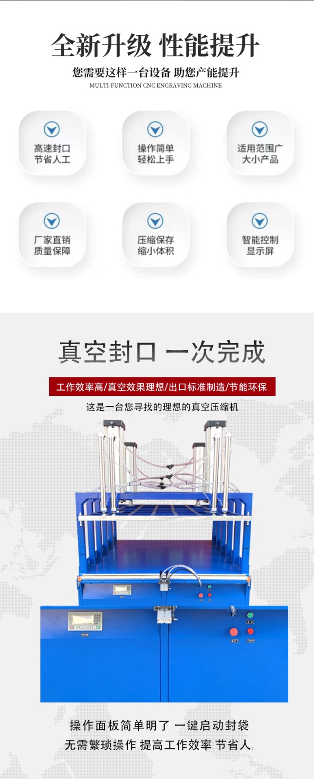- 關機:關閉真空壓縮封口機的電源開關,拔掉電源插頭。如果長時間不使用機器,還可以用防塵罩將機器覆蓋,以保護機器免受灰塵污染。