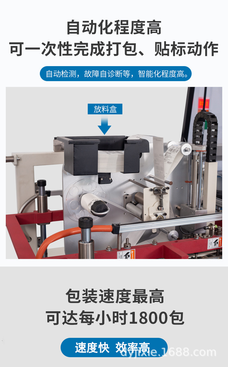 - 包裝速度:根據(jù)業(yè)務(wù)量大小選擇合適的包裝速度。如果業(yè)務(wù)量較大,如大型電商倉庫或快遞分撥中心,需要選擇高速的一體機(jī),一般封切貼標(biāo)速度在 30-60 袋 / 分鐘甚至更高;而業(yè)務(wù)量較小的場景,速度在 15-30 袋 / 分鐘的一體機(jī)可能就足夠了2。