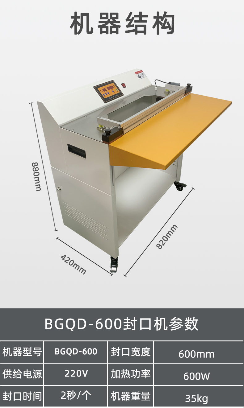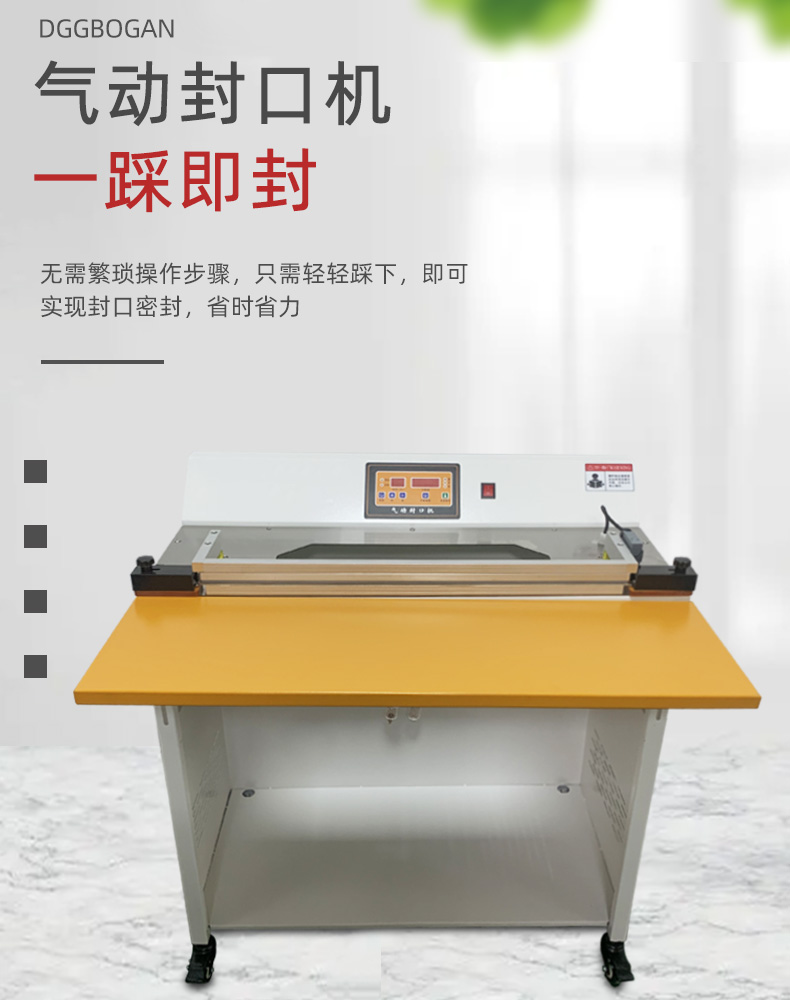 氣動封口機采用氣動驅動,氣缸的動作速度較快,能夠在短時間內完成封口操作,提高包裝效率