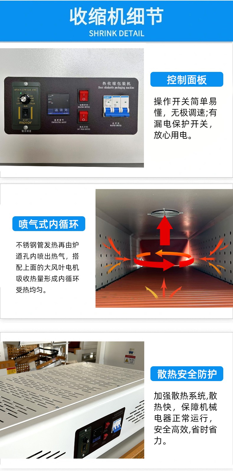 • 熱收縮效果:熱收縮機(jī)的收縮效果直接影響產(chǎn)品的包裝外觀。理想的熱收縮效果是使熱收縮膜緊密貼合產(chǎn)品表面,無褶皺、無破裂。這取決于熱收縮通道的溫度均勻性、風(fēng)速調(diào)節(jié)以及輸送速度的配合等因素。