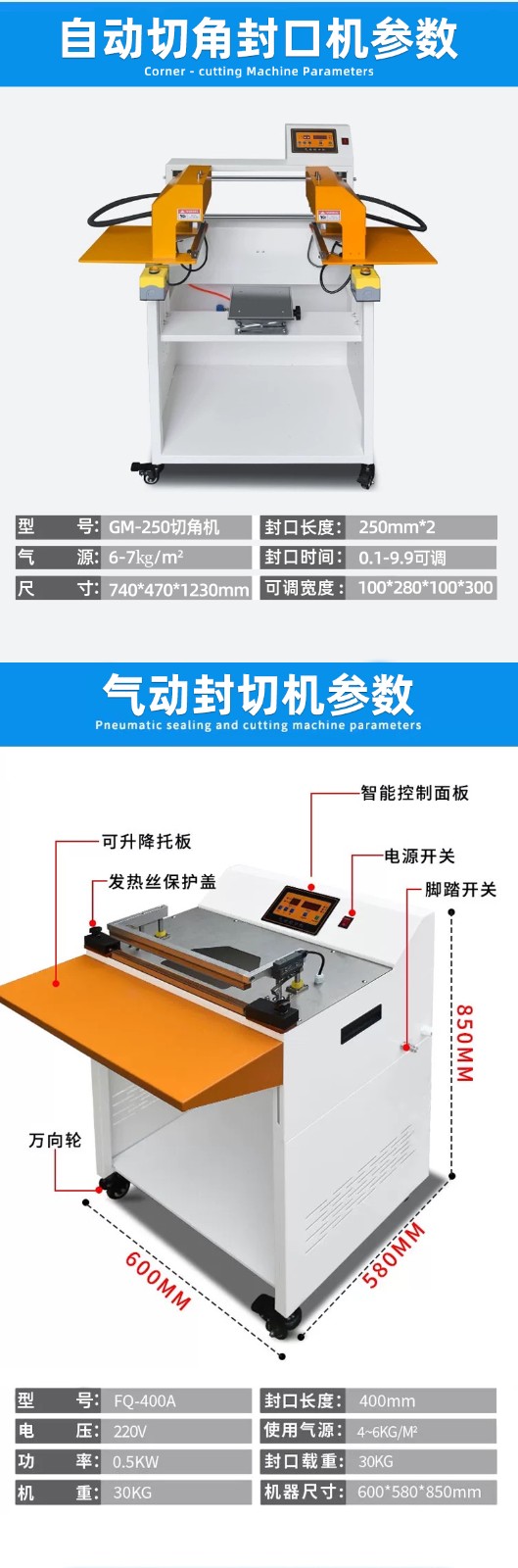• 材料厚度:包裝材料的厚度也會(huì)影響設(shè)備的選型。較厚的材料需要更大的封口壓力和更高的熱封溫度,同時(shí)對(duì)切角刀具的要求也更高。因此,要根據(jù)材料厚度選擇具有相應(yīng)功率和壓力調(diào)節(jié)范圍的設(shè)備。