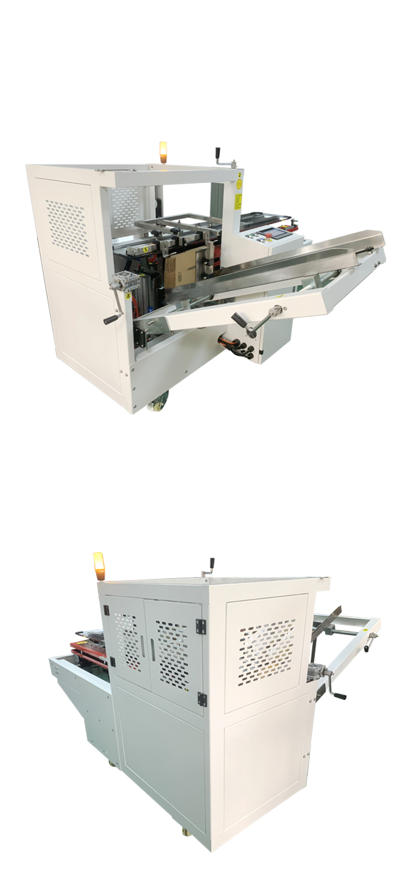設(shè)備通過 PLC 程序精準(zhǔn)控制每一步動(dòng)作(如吸箱力度、折邊角度、膠帶粘貼壓力),確保所有紙箱的