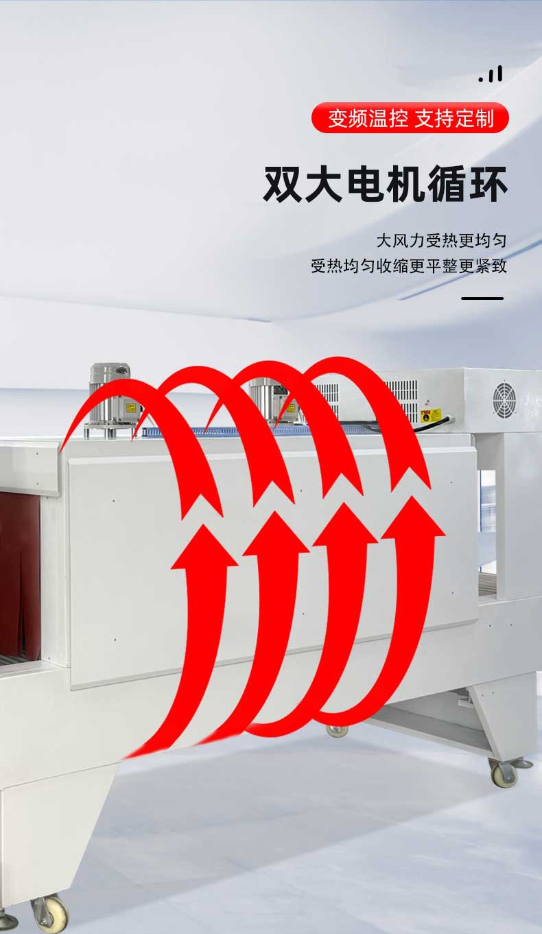 不同于傳統(tǒng)通用型包裝設(shè)備,袖口式熱收縮包裝機(jī)從設(shè)計源頭就瞄準(zhǔn) “瓶類產(chǎn)品組合包裝” 場景,徹底擺脫 “一機(jī)一用” 的局限。其針對瓶型包裝的特殊性,采用 “輸送帶 + 膜架 + 熱收縮通道” 的一體化結(jié)構(gòu):輸送帶可根據(jù)瓶身直徑、高度靈活調(diào)節(jié)寬度與輸送速度,無論是 500ml 的標(biāo)準(zhǔn)礦泉水瓶、1.2L 的果汁瓶,還是按壓式泵頭設(shè)計的洗手液瓶、帶提手的消毒液瓶,均能通過輸送帶平穩(wěn)輸送且不偏移;膜架部分配備自動張力控制系統(tǒng),可根據(jù)包裝膜厚度(常用 POF、PE 膜)精準(zhǔn)調(diào)節(jié)出膜力度,避免因膜張力不均導(dǎo)致的包裝褶皺或破損;熱收縮通道則采用分區(qū)加熱設(shè)計,針對瓶身與組合間隙的不同熱收縮需求,實(shí)現(xiàn)均勻受熱,確保單瓶獨(dú)立包裝時膜面貼合瓶身,多瓶組合(如 2 瓶并排、4 瓶成箱、6 瓶堆疊)時膜體緊密包裹整體,杜絕 “局部收縮不到位” 的問題。
