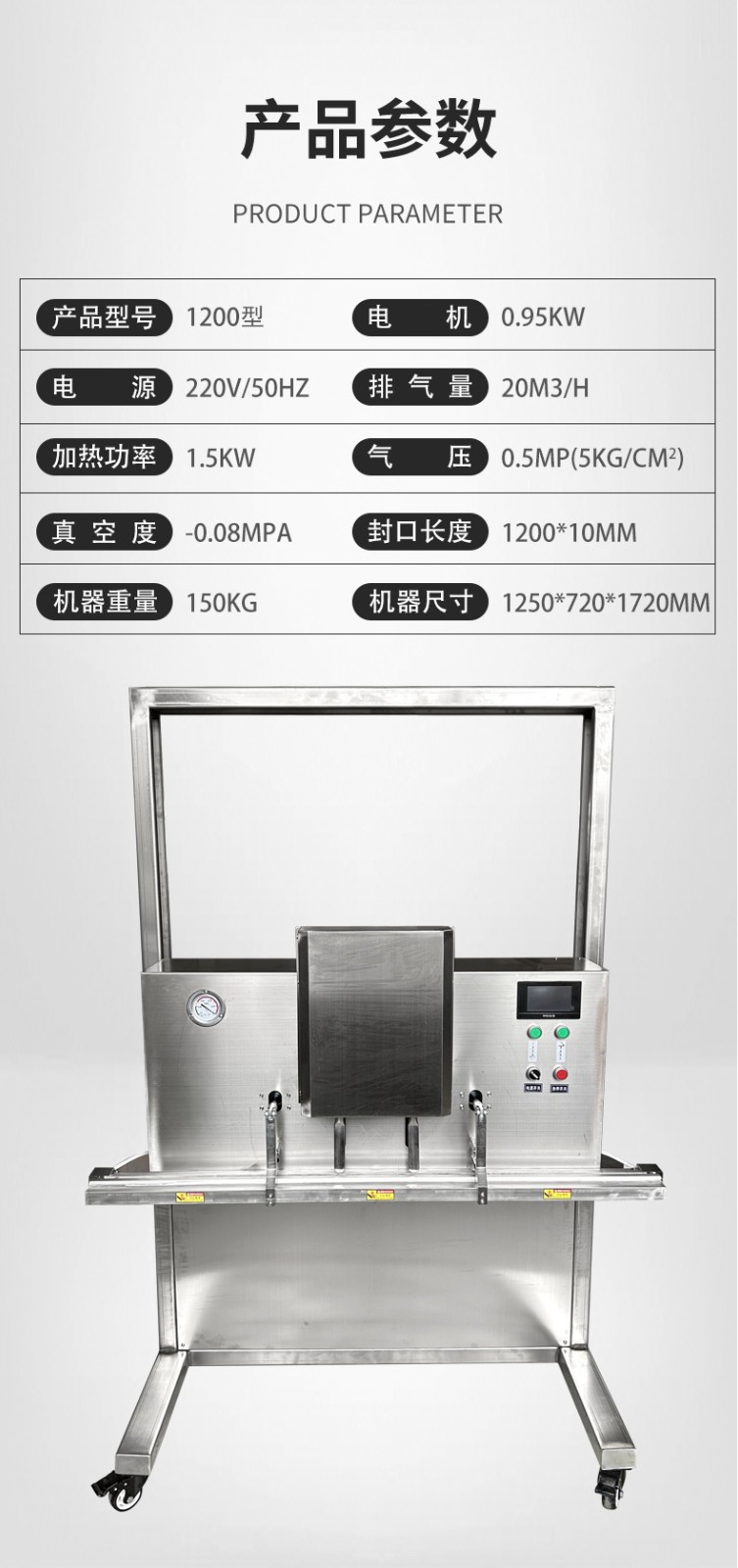 可定制與多模式適配不同尺寸:部分機(jī)型支持封口規(guī)格定制,封口長度可達(dá)到 800mm、1000mm 甚至 1200mm 等,適配不同寬度的包裝袋。同時(shí),部分先進(jìn)機(jī)型預(yù)設(shè)多組工作模式,可快速切換真空、充氣、封口等流程,適配從小袋糕點(diǎn)到大袋五金模具等不同尺寸、類型產(chǎn)品的包裝需求。