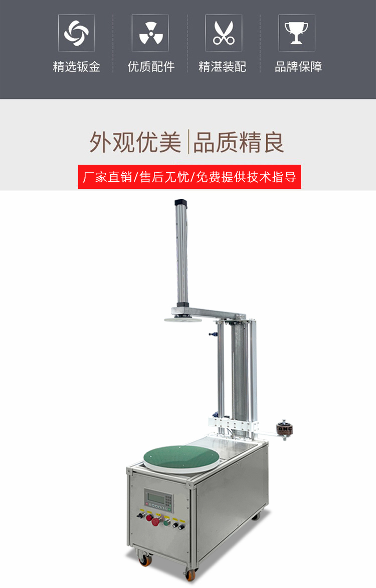 在靈活性層面,它無需提前預(yù)設(shè)大量復(fù)雜參數(shù),操作人員僅需簡單培訓(xùn),就能快速完成不同尺寸、不同形狀產(chǎn)品的切換作業(yè)。通過人工微調(diào)定位與纏繞角度,實現(xiàn)高效適配,完美契合多品種、小批量的生產(chǎn)模式。同時,設(shè)備機身設(shè)計緊湊,無需配套自動化輸送線,即便車間場地狹窄,也能靈活擺放,甚至可搭配腳輪實現(xiàn)移動作業(yè),進一步拓展應(yīng)用場景。
