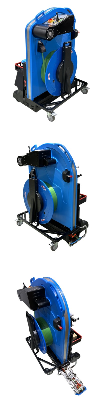 - 導(dǎo)向系統(tǒng):由多個(gè)導(dǎo)向輪和導(dǎo)軌組成。導(dǎo)向輪一般是可以靈活轉(zhuǎn)動(dòng)的滾輪,它們可以根據(jù)打包帶的寬度和穿帶路徑進(jìn)行調(diào)整。導(dǎo)軌則是為打包帶提供了一個(gè)固定的通道,確保打包帶沿著預(yù)定的路線行進(jìn)。比如,當(dāng)打包帶需要轉(zhuǎn)彎時(shí),導(dǎo)向輪會(huì)將其引導(dǎo)到合適的軌道上。