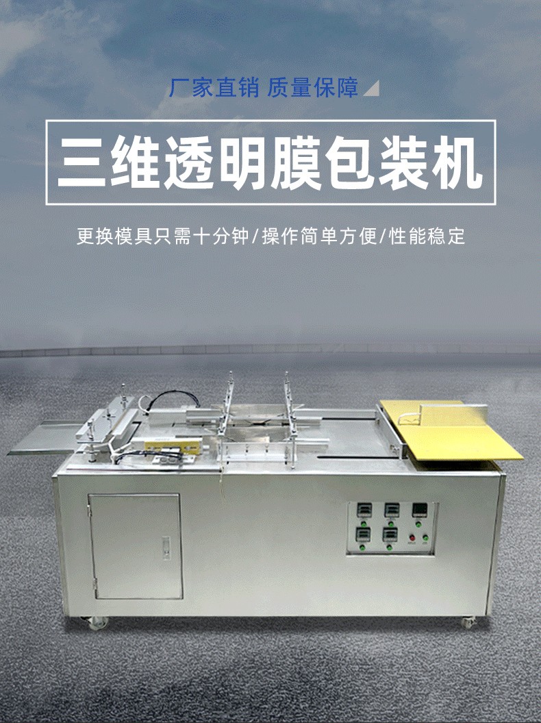 設(shè)備通過 “膜料預(yù)處理→人工上料定位→三維裹膜成型→熱封切邊→折邊定型→成品輸出” 的流程,實現(xiàn)產(chǎn)品的立體包裝,具體步驟拆解如下:
