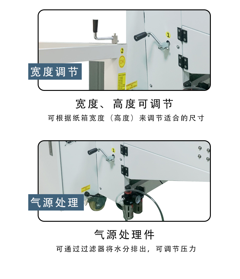 • 熱熔膠封底系統(tǒng)(如果是熱熔膠封底):主要有熱熔膠槍、膠量控制裝置和溫度調(diào)節(jié)裝置。熱熔膠槍的噴嘴形狀和角度要根據(jù)紙箱底部的形狀和封底要求來設(shè)計,以保證熱熔膠能夠均勻地涂抹在折頁上。膠量控制裝置可以根據(jù)紙箱的大小和材質(zhì)來調(diào)節(jié)熱熔膠的用量,溫度調(diào)節(jié)裝置則要確保熱熔膠能夠保持在合適的熔化溫度,既不會因為溫度過低而無法熔化,也不會因為溫度過高而影響膠的性能。
