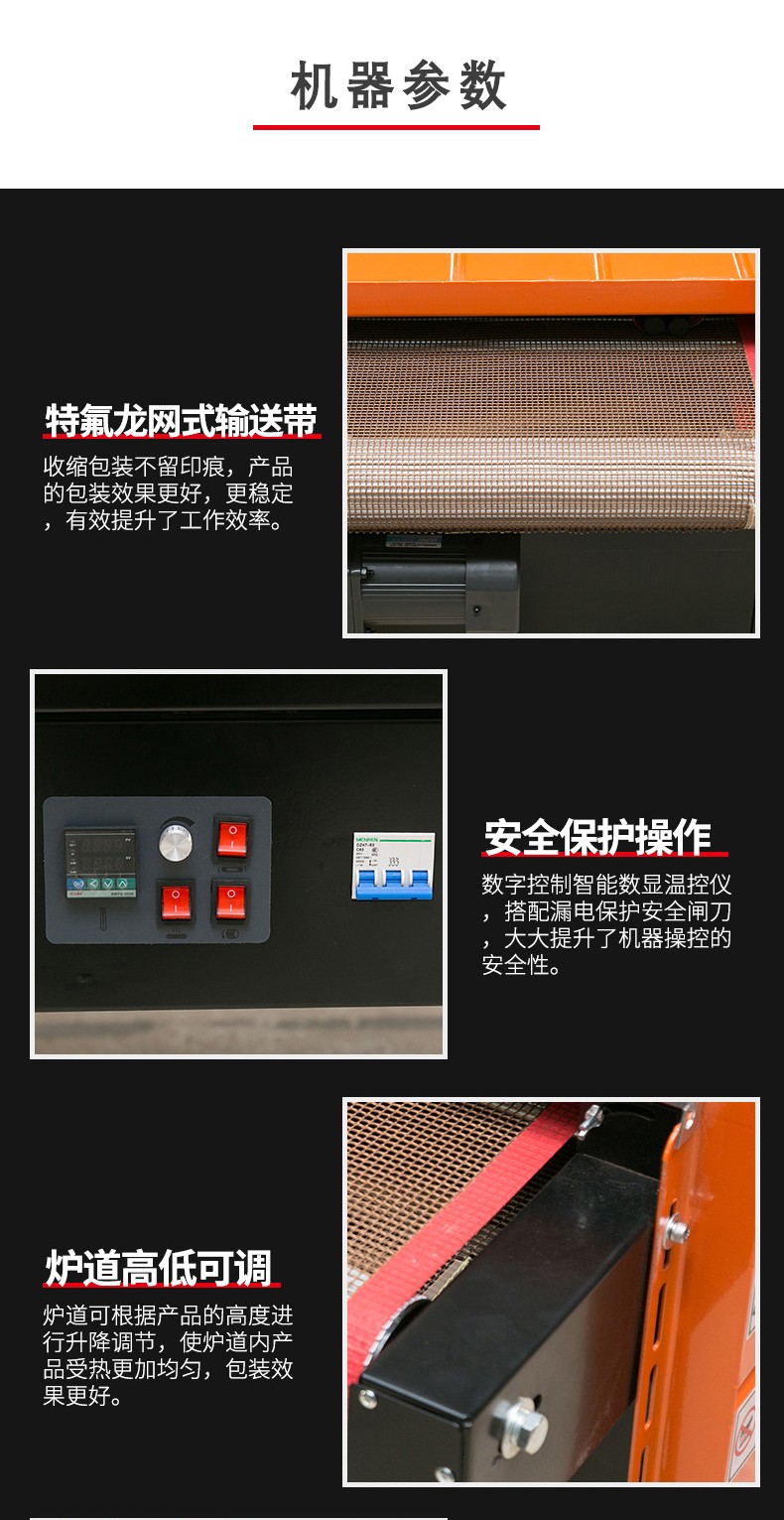 - 精準(zhǔn)溫度調(diào)節(jié):配備了先進(jìn)的溫度控制系統(tǒng),可以精確地調(diào)節(jié)熱空氣的溫度。操作人員可以根據(jù)不同的薄膜材質(zhì)和產(chǎn)品包裝要求,在較寬的溫度范圍內(nèi)(通常為 100 - 250℃)進(jìn)行設(shè)置。例如,對(duì)于 PVC 薄膜,一般將溫度設(shè)置在 140 - 160℃之間,就能實(shí)現(xiàn)良好的收縮效果;而對(duì)于 POF 薄膜,溫度可能需要調(diào)整到 160 - 180℃左右。這種精準(zhǔn)的溫度調(diào)節(jié)有助于優(yōu)化包裝質(zhì)量,避免因溫度過高導(dǎo)致薄膜破裂或溫度過低使薄膜無法充分收縮。
