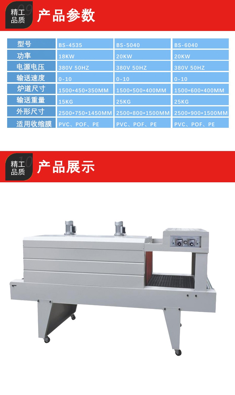 - 高效的加熱與收縮系統(tǒng):其加熱系統(tǒng)采用高效的加熱元件,能夠快速將空氣加熱到所需溫度,從而加快薄膜的收縮速度。同時,噴氣系統(tǒng)通過合理設(shè)計的噴氣嘴和強大的風(fēng)機,將熱空氣均勻地噴射到薄膜上,使薄膜能夠在短時間內(nèi)實現(xiàn)全方位的收縮。與傳統(tǒng)的包裝方式相比,這種高效的加熱和收縮系統(tǒng)可以顯著提高包裝速度,滿足大批量生產(chǎn)的需求。