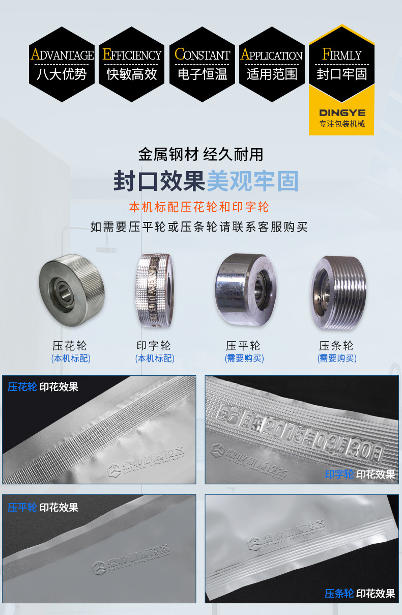 • 針對(duì)鋁箔材料或者鋁箔復(fù)合包裝材料設(shè)計(jì)。鋁箔具有良好的阻隔性,能有效防止氧氣、水分等進(jìn)入包裝內(nèi)部。這種封口機(jī)可以確保鋁箔包裝的密封性,常用于食品、藥品、保健品等行業(yè),如藥品的鋁箔泡罩包裝的封口。