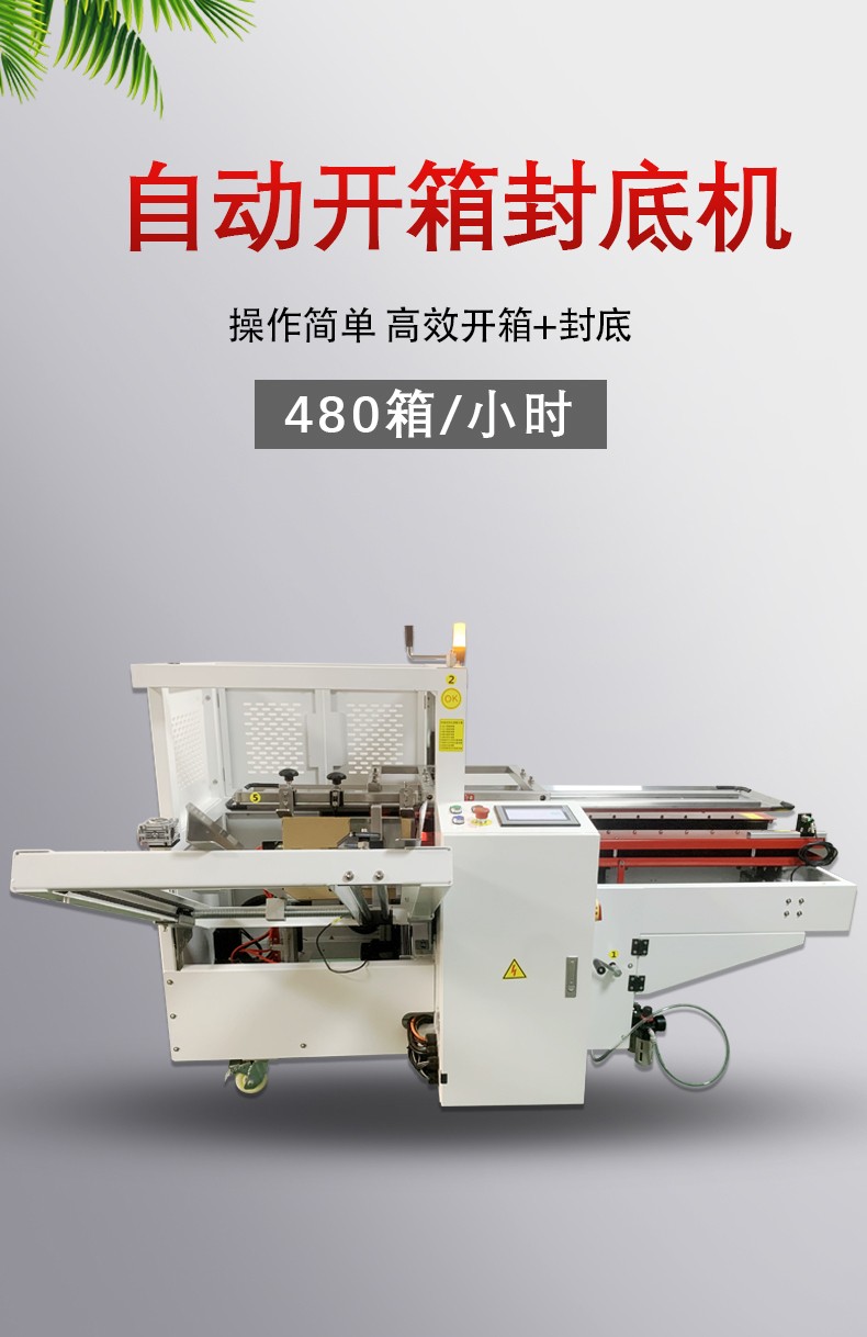 自動(dòng)開箱封底機(jī)作為自動(dòng)化包裝設(shè)備的核心組成部分,其優(yōu)勢主要圍繞生產(chǎn)效率提升、成本控制、包裝質(zhì)量穩(wěn)定、操作便捷性及場景適應(yīng)性展開,具體可拆解為以下六大核心優(yōu)勢: