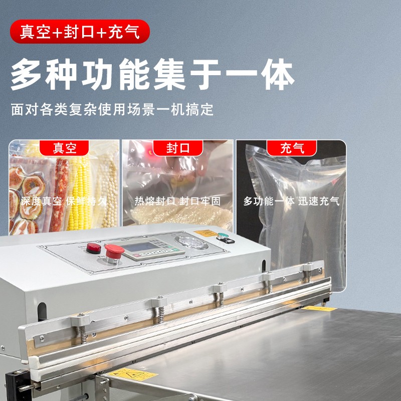 多功能一體的外抽真空包裝機(jī),是在基礎(chǔ)外抽真空功能上,整合了充氣保鮮、封口、印字等多種功能的設(shè)備,能一站式滿(mǎn)足不同物品的包裝需求,核心優(yōu)勢(shì)是功能集成度高、場(chǎng)景適配性強(qiáng),無(wú)需額外購(gòu)置多臺(tái)設(shè)備。