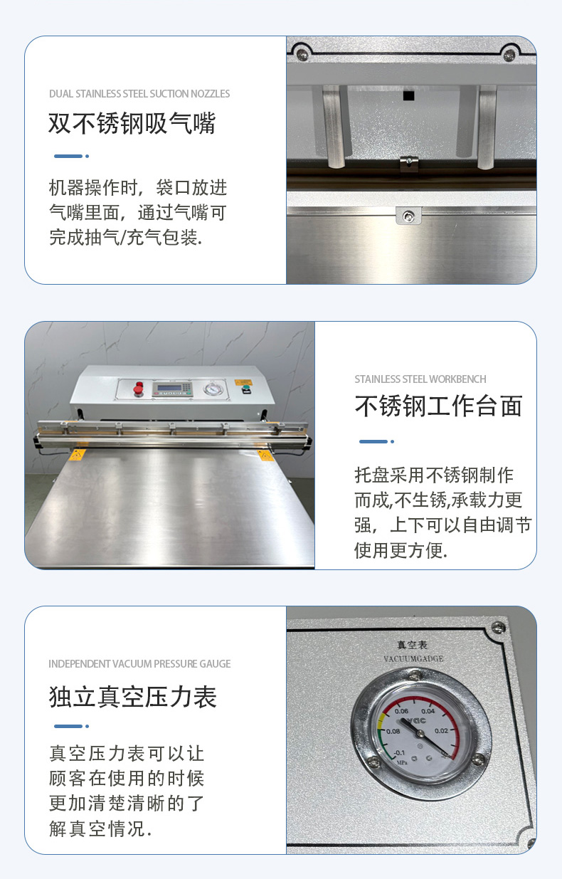 - 功能匹配:根據(jù)核心需求選擇集成功能,例如食品行業(yè)優(yōu)先選 “真空 + 充氣 + 印字” 款,工業(yè)領(lǐng)域可側(cè)重 “真空 + 寬邊封口” 款。