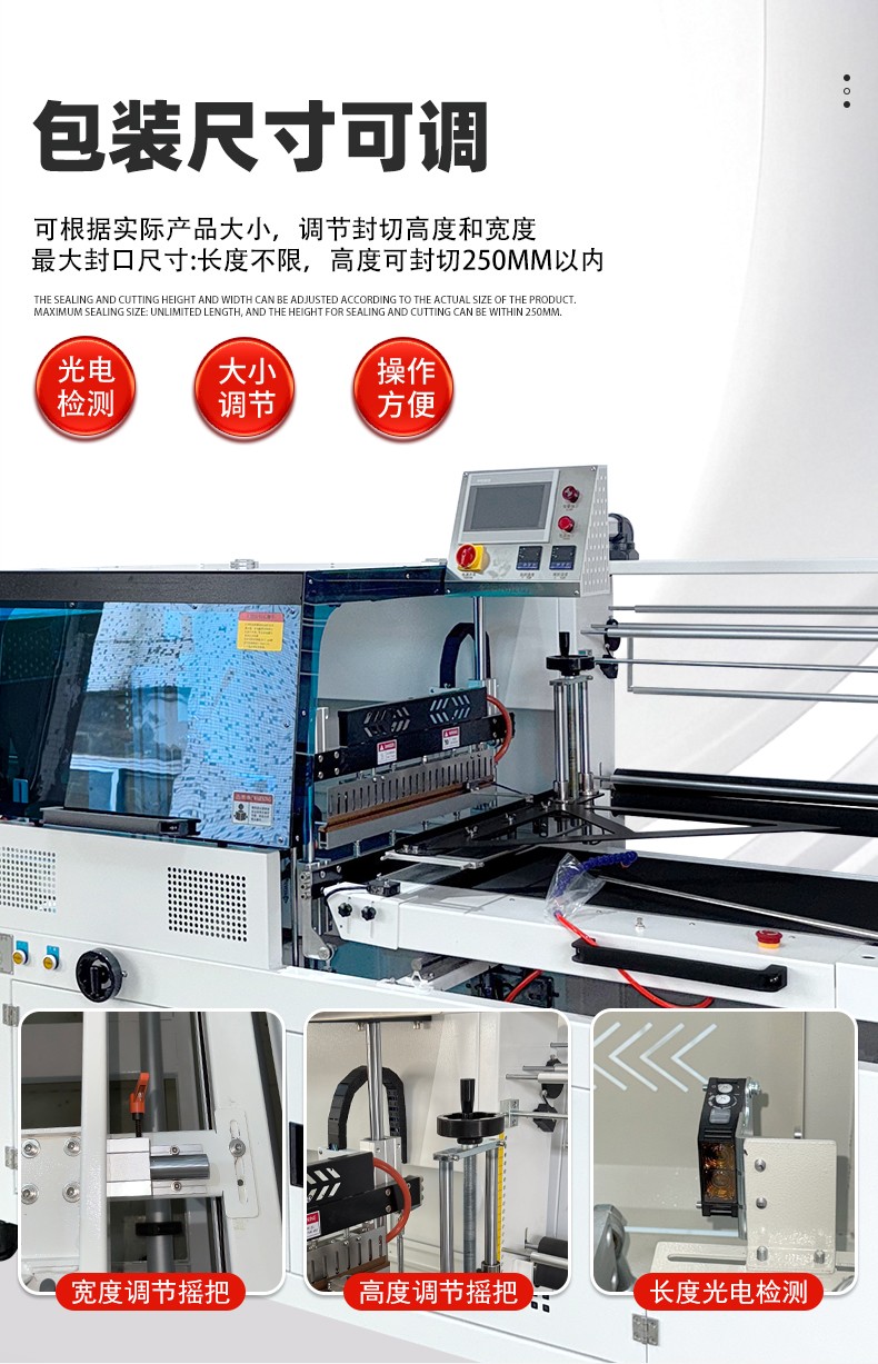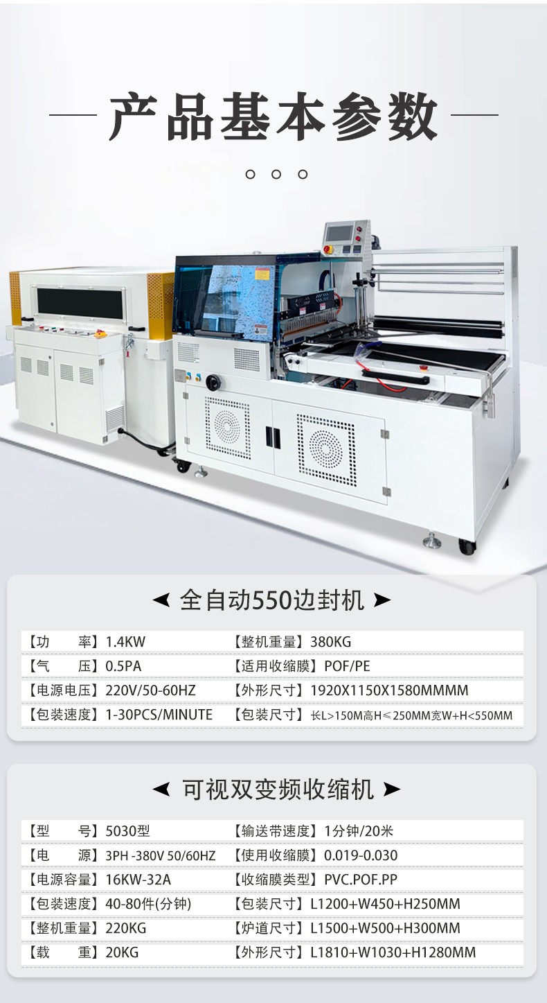 全自動(dòng)邊封熱收縮包裝機(jī)自動(dòng)化程度高,邊封設(shè)計(jì)使產(chǎn)品包裝長(zhǎng)度無(wú)限制