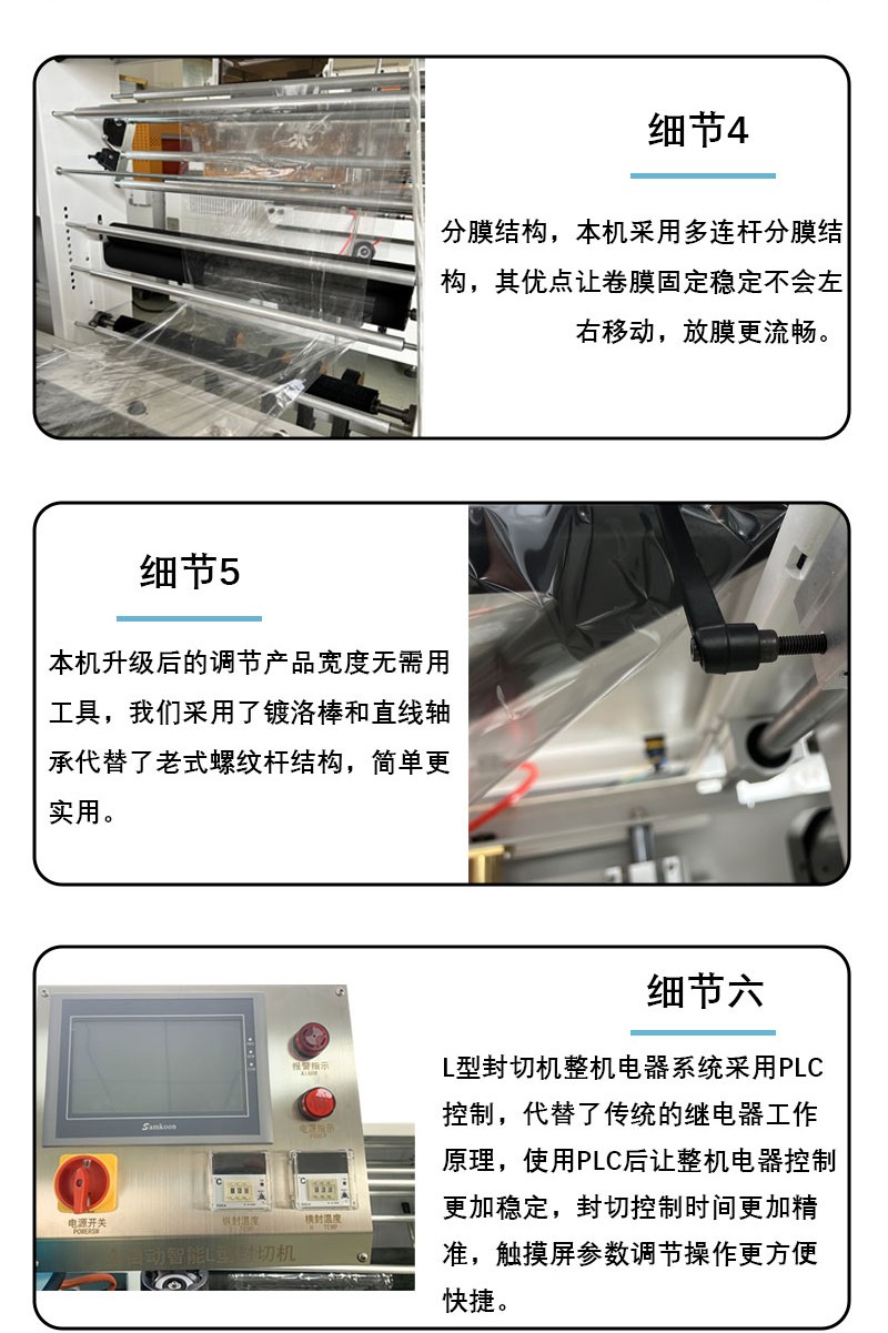 - 封切精度高,包裝成品率優(yōu)異采用 PLC 可編程控制系統(tǒng)與伺服電機(jī)驅(qū)動(dòng),搭配光電感應(yīng)定位技術(shù),能精準(zhǔn)識(shí)別產(chǎn)品尺寸,實(shí)現(xiàn)膜料的定長(zhǎng)輸送與封切,封口線平整牢固,切口光滑無毛刺,有效避免因封切偏差導(dǎo)致的膜料浪費(fèi),成品率可達(dá) 99.5% 以上。同時(shí),特制耐高溫鋁合金封刀具備防粘刀功能,適配 POF、PVC、PE 等多種熱收縮膜,杜絕膜料粘連封刀造成的包裝瑕疵。