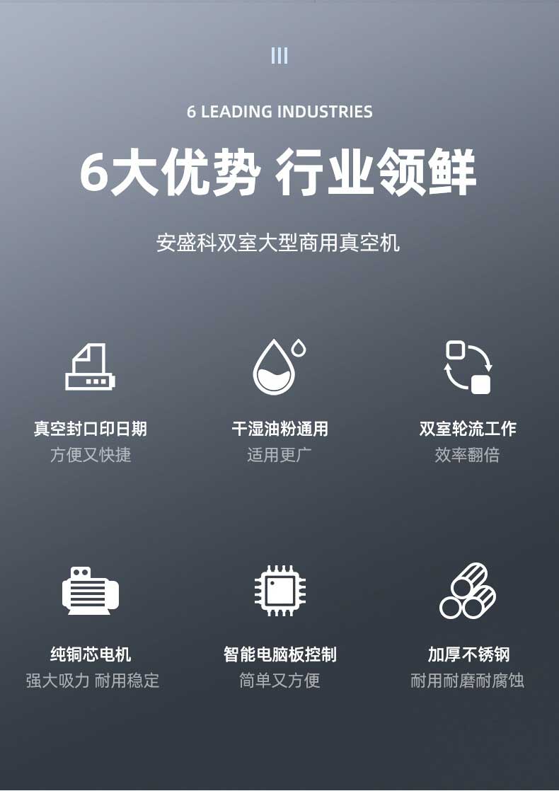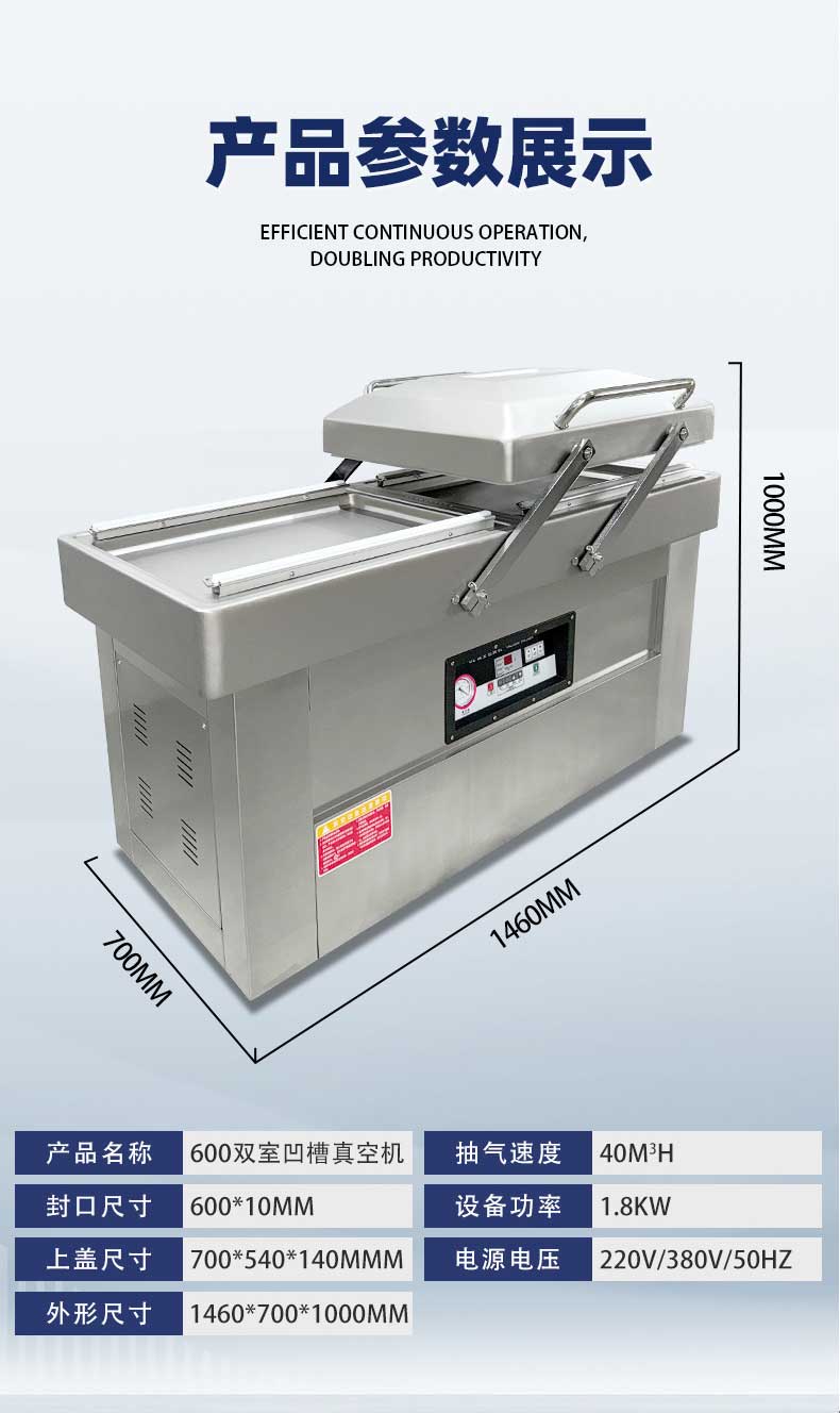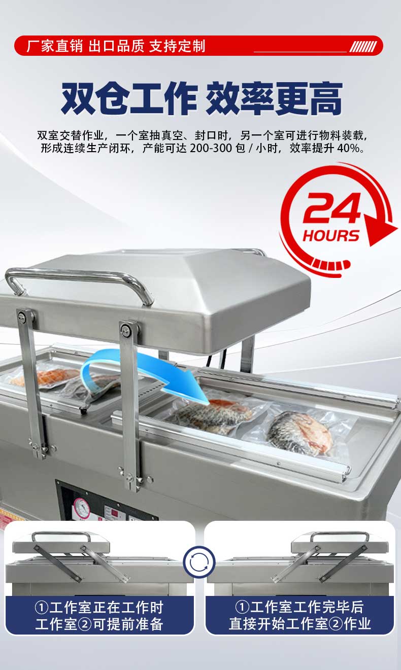 - 高效包裝:兩個真空室可交替工作,當(dāng)一個真空室進行抽真空和封口操作時,另一個真空室可進行下一批產(chǎn)品的擺放等準備工作,大大提高了包裝效率,減少了整體運作時間3。