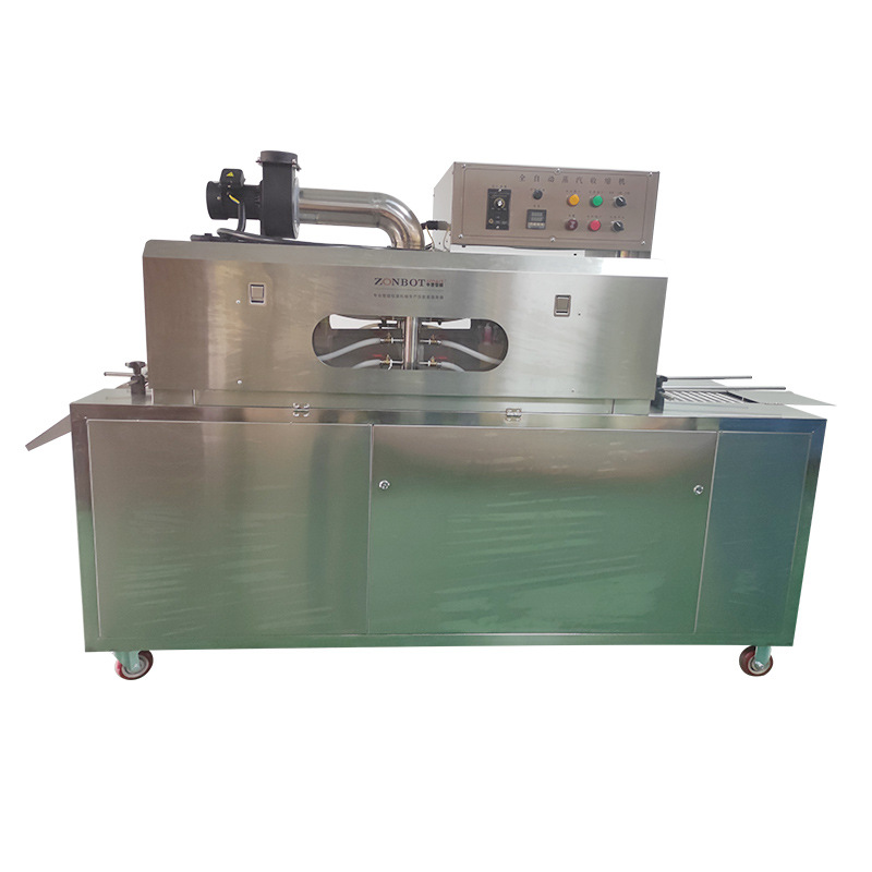 收縮階段:包裝好的產(chǎn)品接著被輸送到蒸汽收縮部分的收縮通道入口。此時,蒸汽發(fā)生系統(tǒng)已經(jīng)產(chǎn)生了合適的蒸汽,蒸汽通過噴頭均勻地噴灑在產(chǎn)品的包裝薄膜上。包裝薄膜在蒸汽的熱量作用下開始收縮,緊密貼合在產(chǎn)品表面。產(chǎn)品在輸送系統(tǒng)的推動下繼續(xù)在收縮通道內(nèi)移動,保證薄膜各個部分都能充分收縮。收縮完成后,通風(fēng)口排出蒸汽,產(chǎn)品在外界環(huán)境下冷卻定型,最終完成蒸汽收縮包裝,從出口輸送帶送出一體機(jī)。